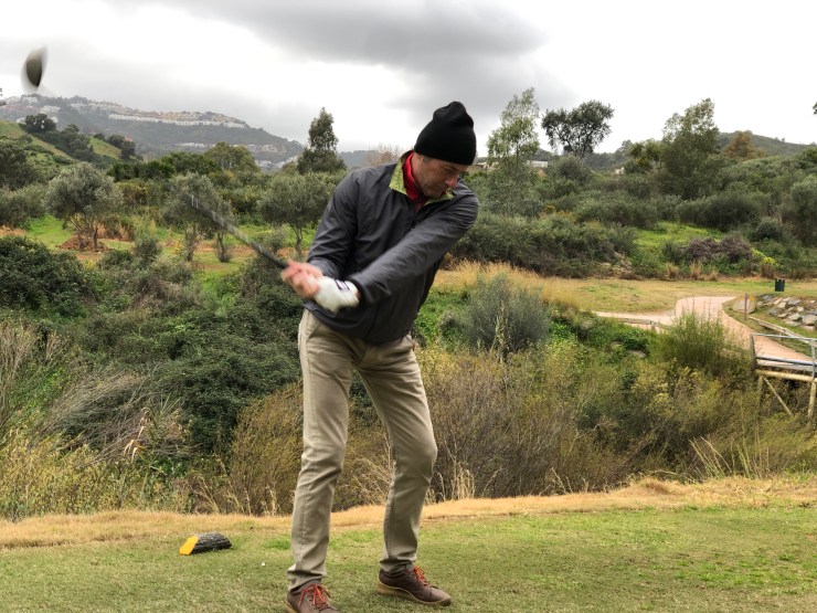 We did not have too much of the spanish sun but honestly I just can admit, I don’t care a lot. Golf means to me sports and I am quite eager at the course and if you are on such wonderful and great courses I enjoy besides hitting my club, the scenery. Enjoying Golf together with your best golf partner in crime is one of the best things ever. We are very likewise when playing Golf and that gives us a „Bonnie and Clyde“ kind of twist. Herbie popped out as my new golf teacher, giving me the best times, dedicated tips and a lot of advices to become soon a single HC player.. haha .. joking 😉