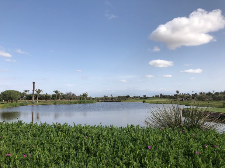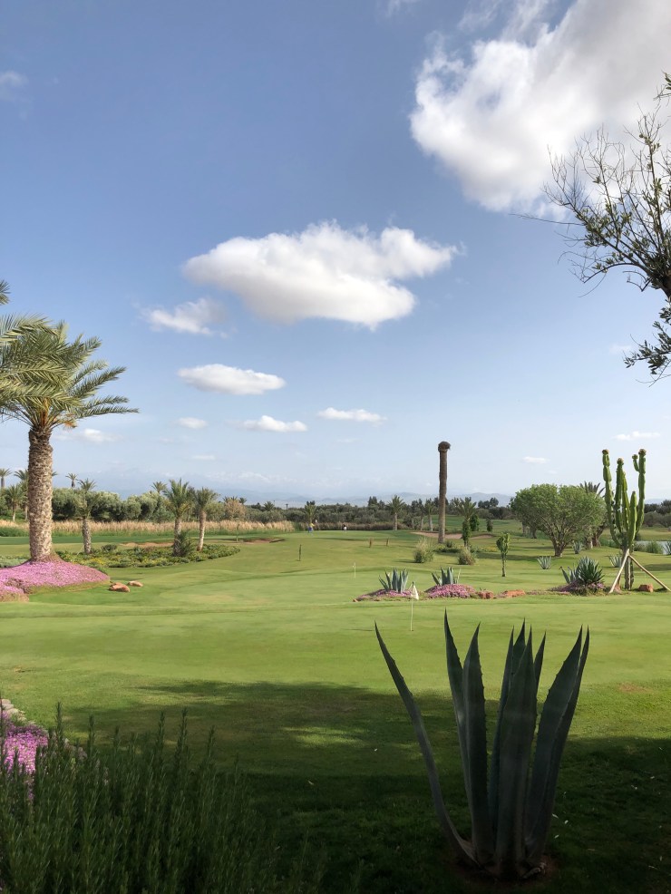 Have I told you that I always wanted to visit MARRAKECH again? I once was there in my teenager years but never then afterwards. Marrakech is a stunning beautiful place with quite a lot of history for an Arabic City not too economically developed. And it also has – of cause between the other hip and fancy related and belated Hotels situated in the old Medina of the town – the Fairmont Royal Palm, with one of my most liked Golf Courses so far. It’s new and it is fun. A bit up and down landscape wise, but every holes is very different and gives you a lot to challenge. Retrospectively I learned so much during this week, my golf swing became more stable – for a while at least.