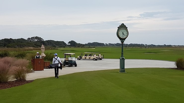 We had a splendid night at The Sanctuary and good sleeps hold us long under the smooth sheets of our linings. The sun was hidden, but the air with a light „links adventure“ smell, craving and calling for us to come and play the „Ocean Course“.