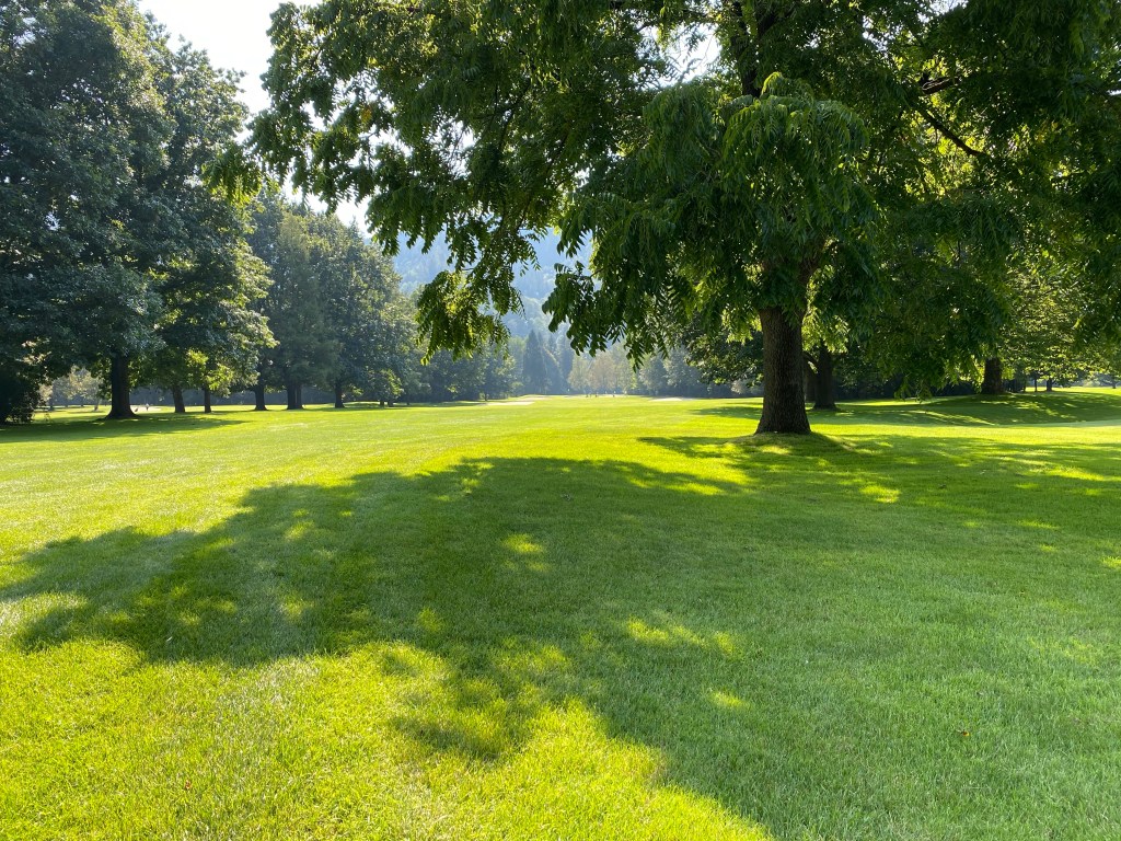 Some of the 18 holes are nestled around a small lake and for some time you play some dogleg rights. The fairway was lush and pretty short. The greens fast and tricky.